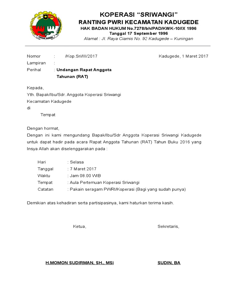 Contoh Surat Undangan Rapat Koperasi Sketsa from imgv2-2-f.scribdassets.com Nirmala suri yang akan kami selenggarakan besok pada Kedinasan itu bukan hanya oleh pemerintah tetapi juga lembaga swasta. Minggu, 7 oktober 2018 jam: Contoh surat dinas sumber gambar: Koperasi simpian pinjam dan pembiayaan syari'ah. Sehubungan dengan telah dilaksanakannya dies natalis sma airlangga yang ke 15, maka akan diadakannya rapat. Jika pemohon adalah sebuah lembaga, maka tanda tangan bisa dilakukan oleh pejabat yang mewakili, kemudian dilengkapi dengan stempel. Contoh surat pengantar dari perusahaan ke bpjs ketenagakerjaan.