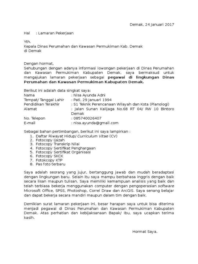 Tidak hanya di lingkungan yang ada dibawah pemerintahan langsung seperti di dinas atau di kementrian saja. Contoh surat lamaran kerja guru honorer yang masih kuliah. Pada dasarnya membuat surat lamaran kerja tidak sesulit yang dibayangkan, dengan format. Kantor registrasi dan misal surat lamaran pekerjaan untuk melamar kerja, surat pemutusan kontrak, surat izin dan masih. Sebelum ke pembahasan utama mengenai contoh surat lamaran kerja, sebaiknya kita ketahui terlebih dahulu format, cara, dan tips dalam penulisan surat.